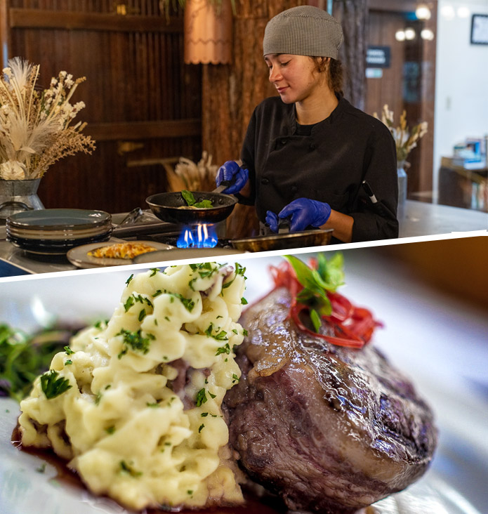 Right off the lobby at Glacier Park Lodge, you'll find the hearty fare of the Great Northern Dining Room, a friendly pour at the Empire Bar, local treasures at the Big Tree Gift Shop, and a fresh brew at Triple Divide Coffee Company. It’s all the charm and convenience of Montana hospitality under one historic roof.